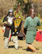 Nine group champions met for the first tourney. front row: Fergus OKelly represented IronOx when Drogo of Axebridge became Marshal in Charge. Griffin Fitzwyse -Troll Fen, Caedon of Jorvik -Grey Niche, Settimio d'Olivio -Seleone, Gwynn Bleyne -Tor an Riogh back row: Olaf Bristlebeard -Wyrmgiest, Strazhek zyn Diomid -Small Gray Bear, Dafydd ap y Kynith -Axemoor, Maxamillian von Braun -Ardanroe. Bye fighter was Christof D'Wynter (Wolf). The Finals between Strazhek and Olaf sent both to today's final tournament. Olaf was the victor. Yes, that is snow.